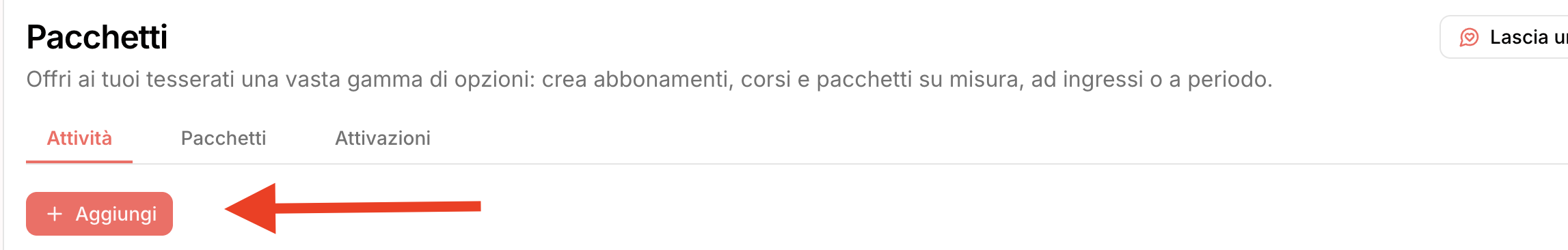 Una volta creato il pacchetto potrai cliccarci sopra in elenco e passare all'area Attivazioni e cliccare su Aggiungi: