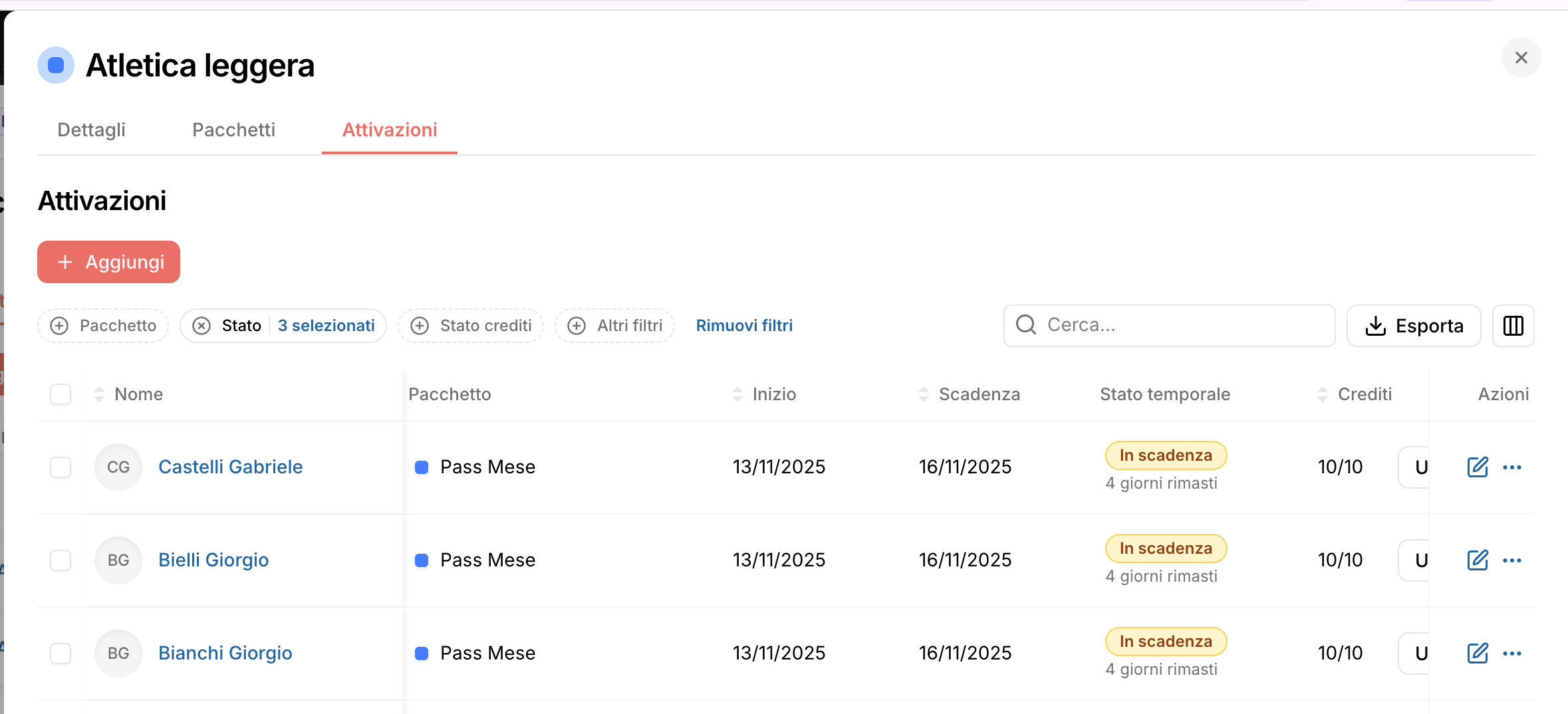 O anche nel caso in cui i tuoi iscritti abbiano abbonamenti con inizi e fine diversificate tra loro