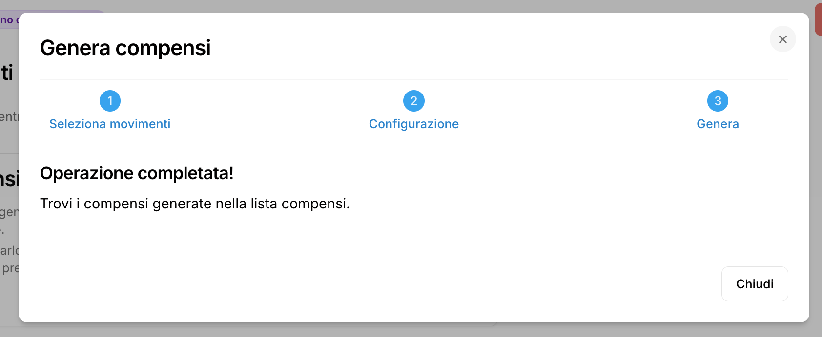 Dall’area "Compensi" è possibile generare in modo massivo i compensi dello staff, a condizione che i relativi pagamenti siano già avvenuti e correttamente registrati.