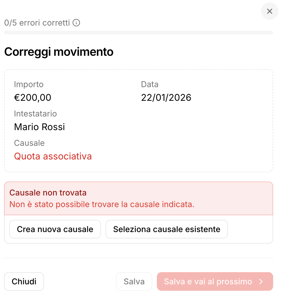 Causale non trovata