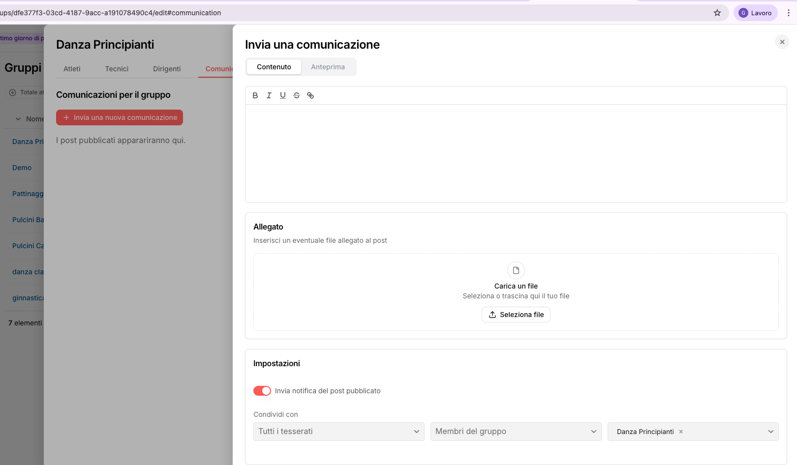 Se vuoi mandare la stessa comunicazione a più di un gruppo contemporaneamente, ti suggeriamo di utilizzare la sezione "bacheca".