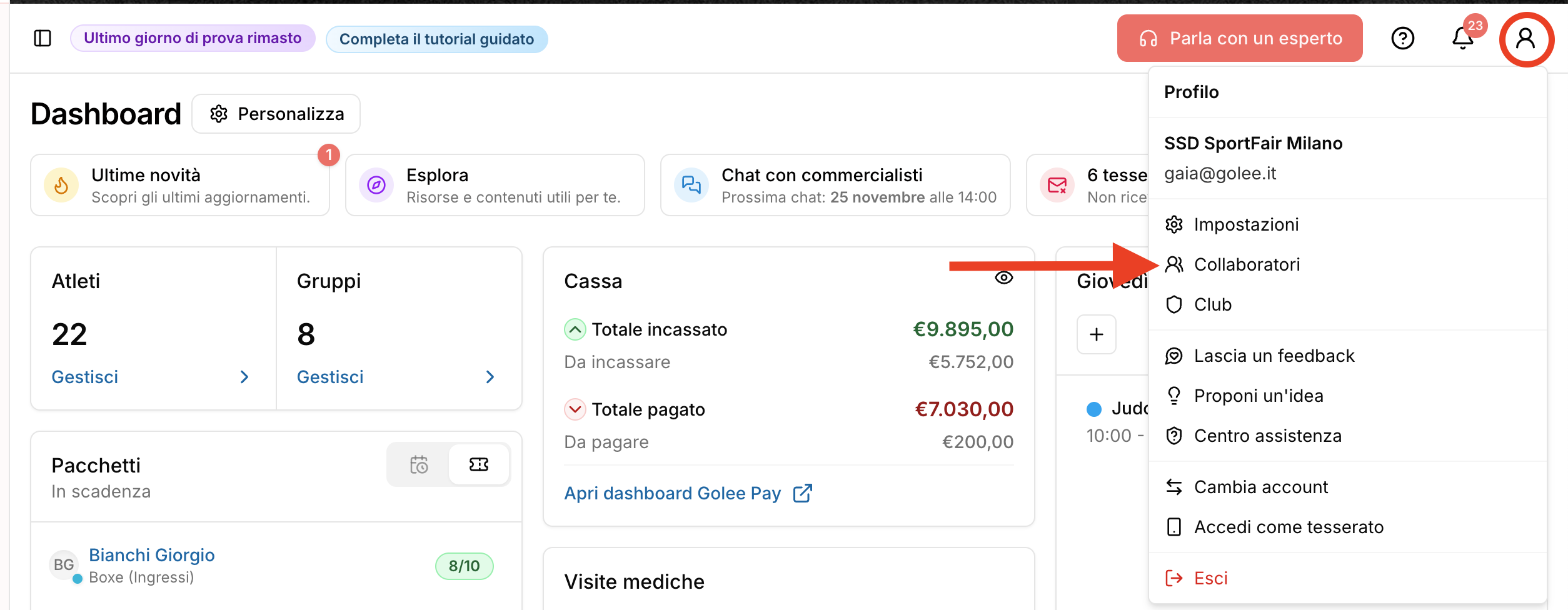 L'attivazione di account "Collaboratori" è una funzionalità inclusa nei piani PLUS o PREMIUM.