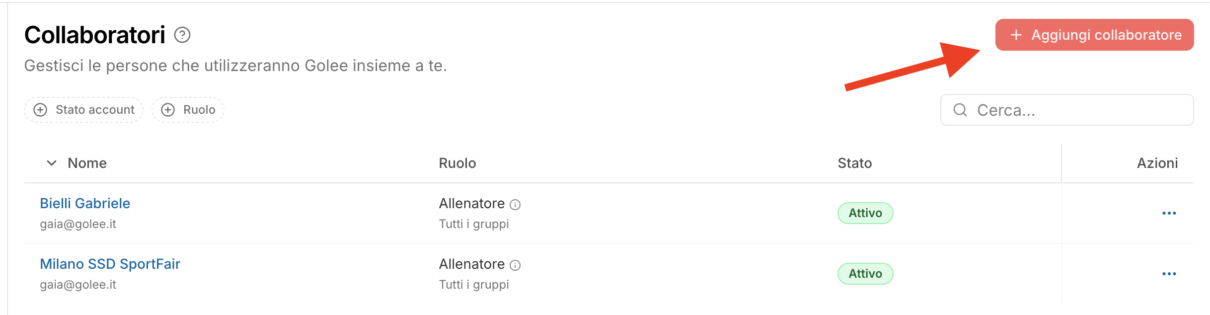 - Dalla medesima sezione "Collaboratori", fai clic sul tasto “Aggiungi”;