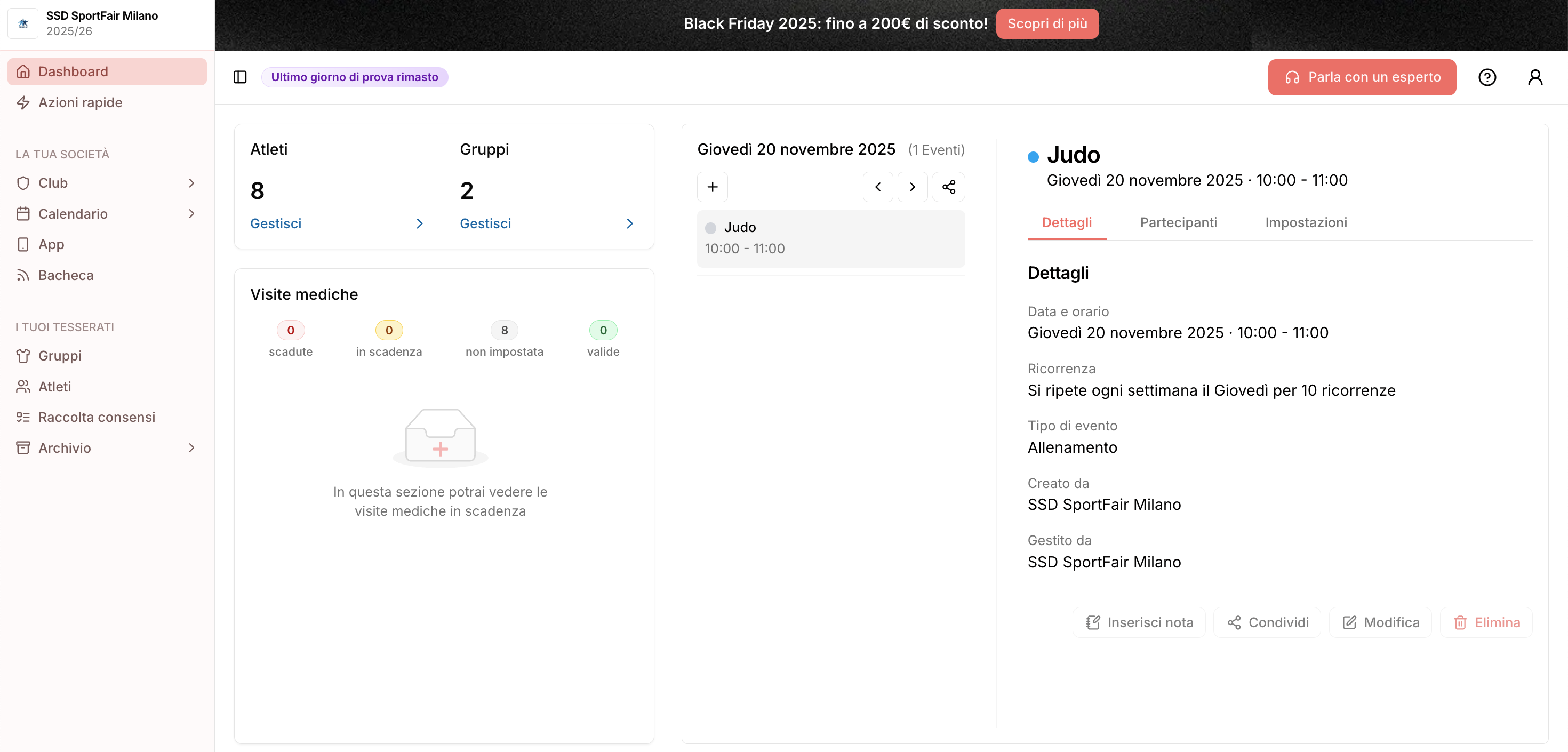 - Allenatore: vede i dati anagrafici degli atleti dei gruppi / squadre a cui è associato, aggiunge eventi al calendario e ne gestisce gli inviti o presenze