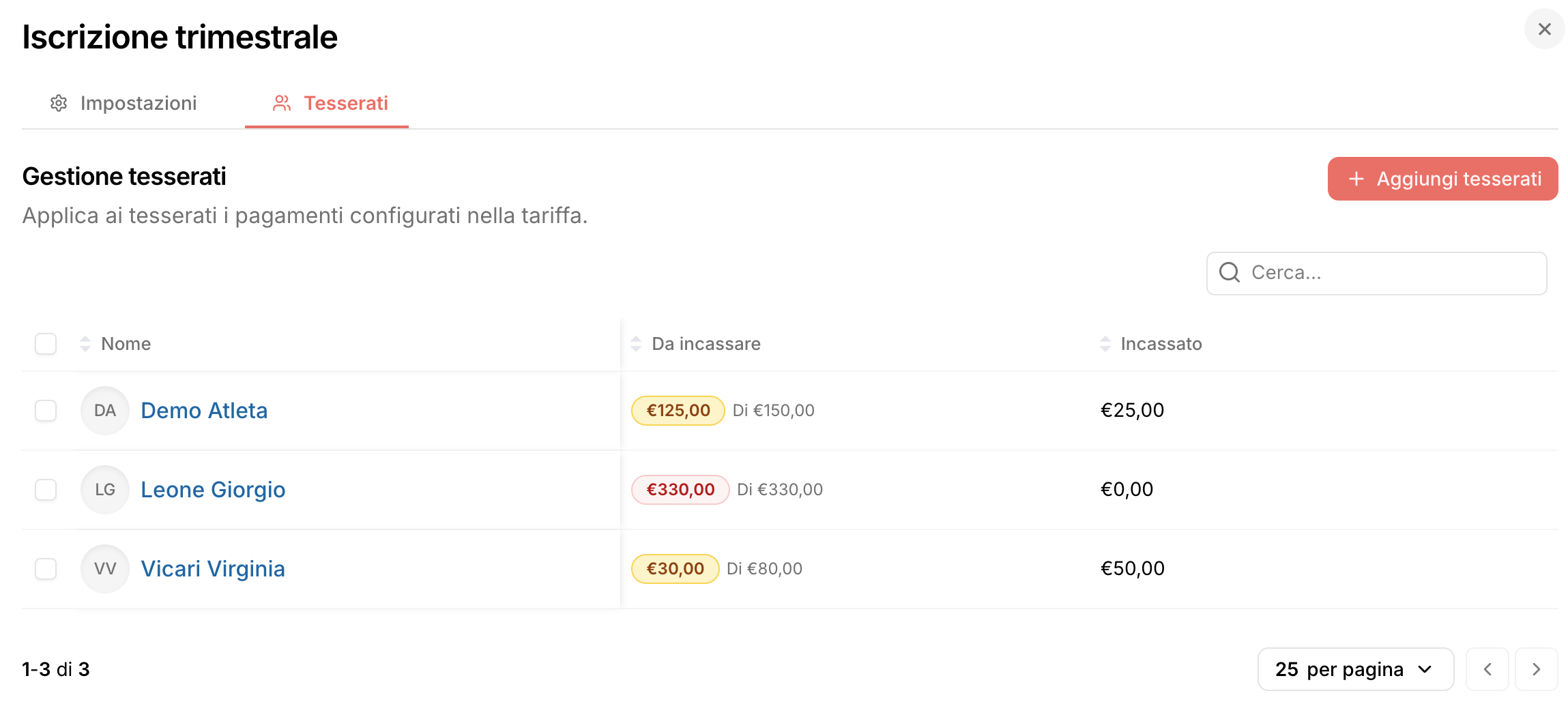 Come gestire i pagamenti di quote o altre entrate per i tesserati