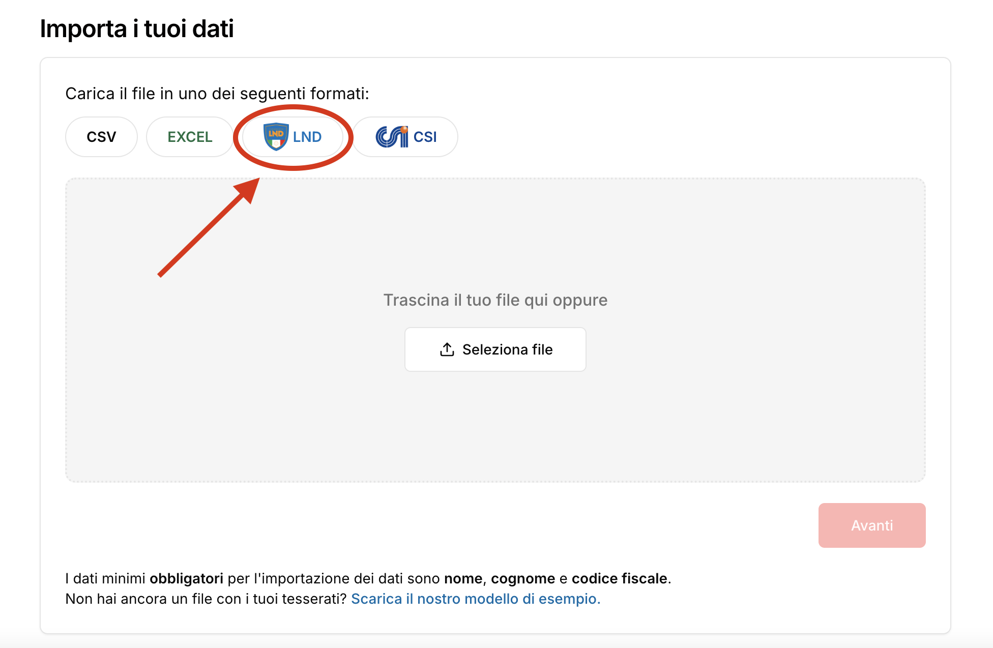 L’import LND è molto comodo e rapido ma utile solo al caricamento di pochi dati (nome, data di nascita, codice fiscale e matricola), per un import più preciso consigliamo sempre di caricare un file excel.