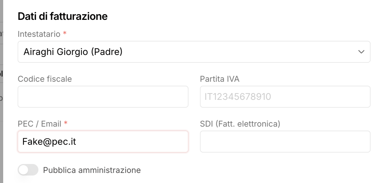 I dati del cliente o del tesserato, invece, li inserisci alla generazione della fattura, ma puoi salvarli per tutte le fatture successive. Così facendo, per la prossima volta che crei una fattura per la stessa anagrafica, te li ritroverai già inseriti. Ti è sufficiente selezionare il seguente bottone alla prima generazione: