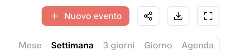 Nella sezione “Calendario”, in alto a destra, puoi esportare l’elenco degli eventi nella visualizzazione corrente. Di default è impostata su “Settimana”, ma puoi passare anche a “Mese”, “Giorno”, “3 giorni” o “Agenda”.